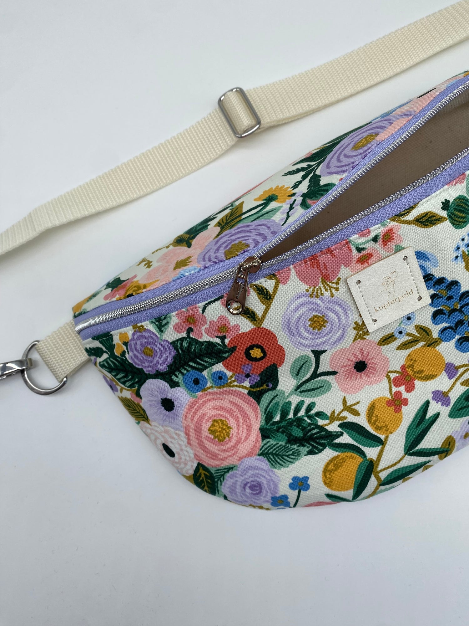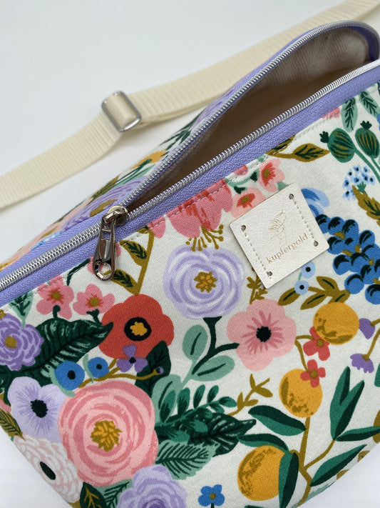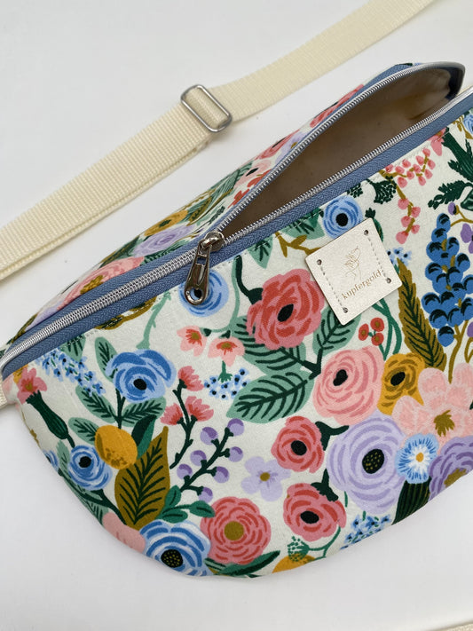 Bauchtasche mit Blumenprint blauer Reißverschluss