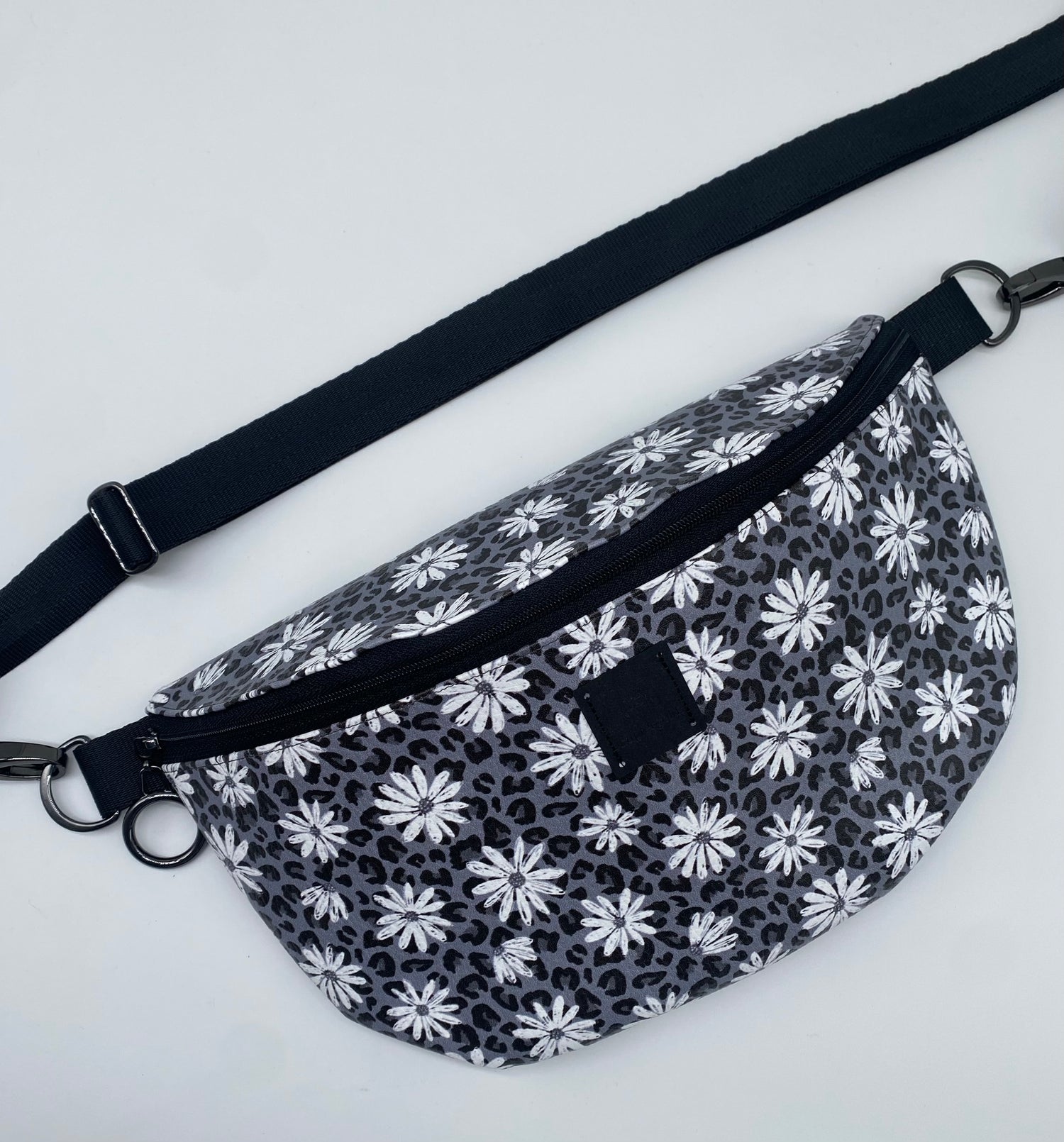 Bauchtasche aus Kunstleder mit Leomuster und Blumen