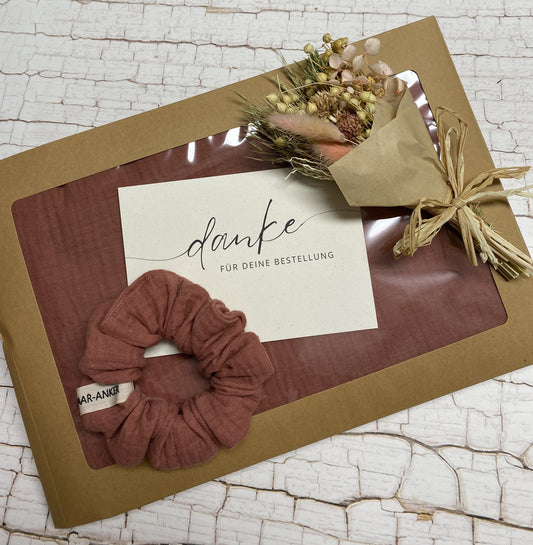 AusverkauftScrunchie Musselin mit Leoprint taube