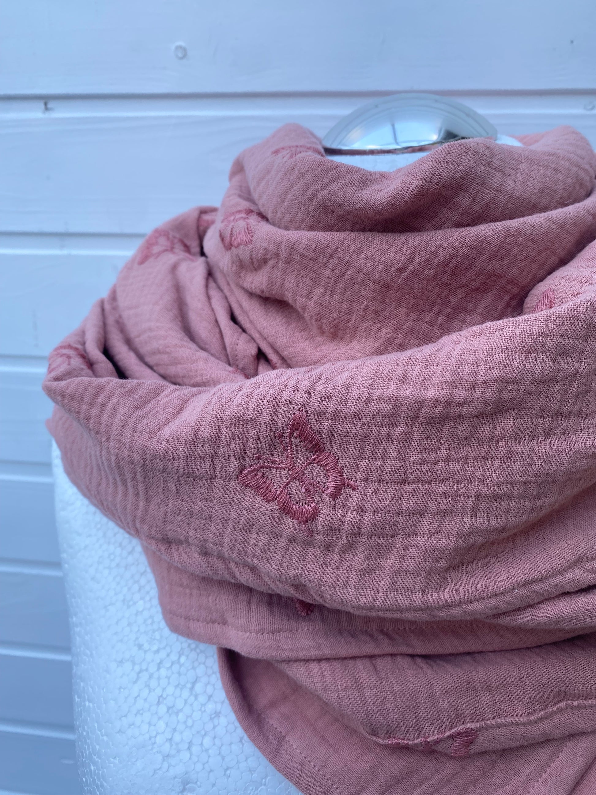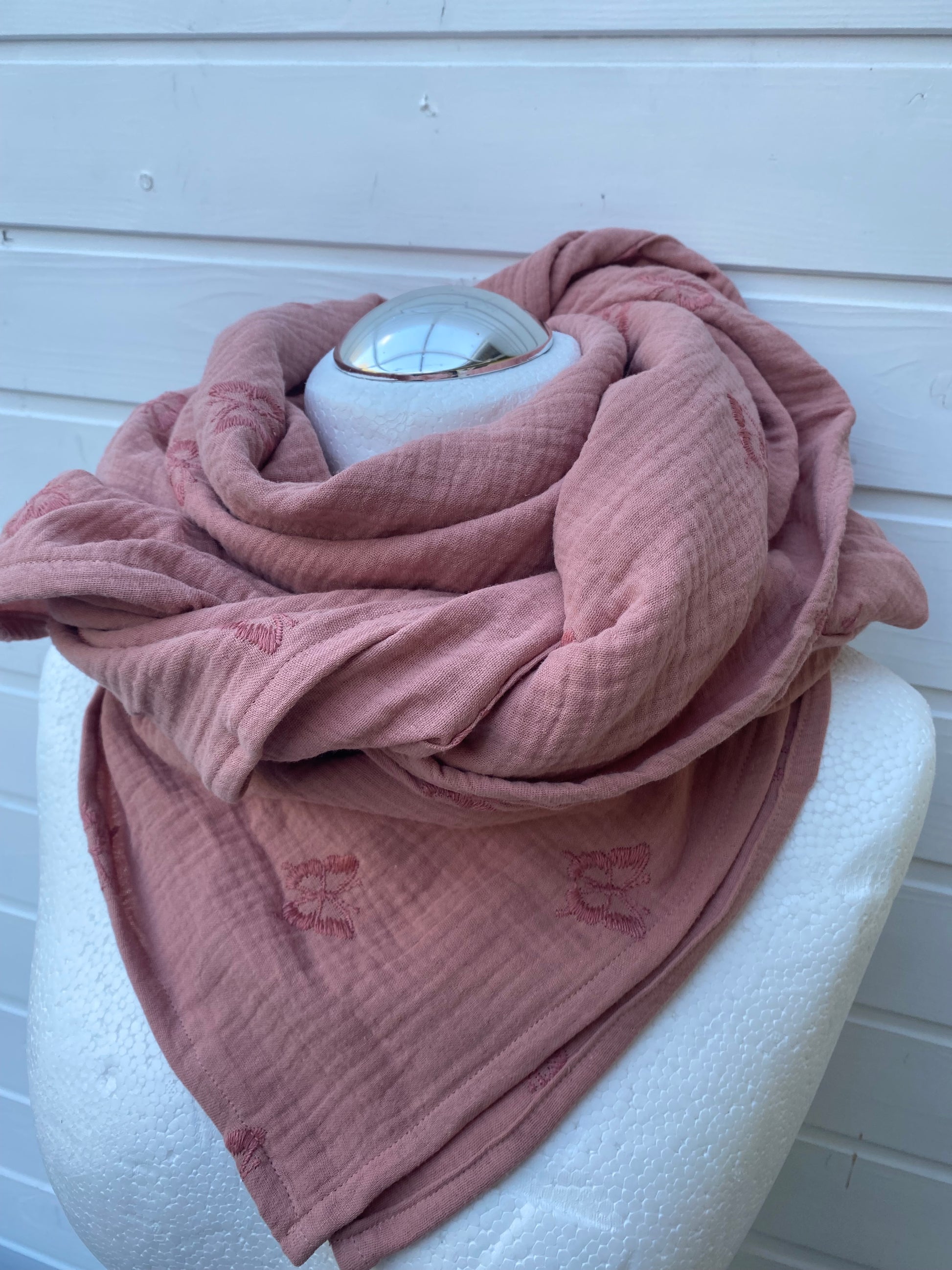 Dieses wunderschöne, handgefertigte Musselintuch aus 100% Baumwolle ist nicht nur ein leichtes Halstuch, sondern auch ein echter Hingucker. Perfekt zum Aufpeppen von Outfits und als praktisches Accessoire für den Alltag. Ein Must-Have für alle, die das Besondere lieben!