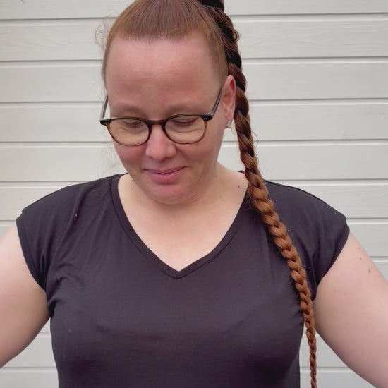 Scrunchies und Taschen bitte per Handwäsche waschen. Keinen Trockner nutzen.